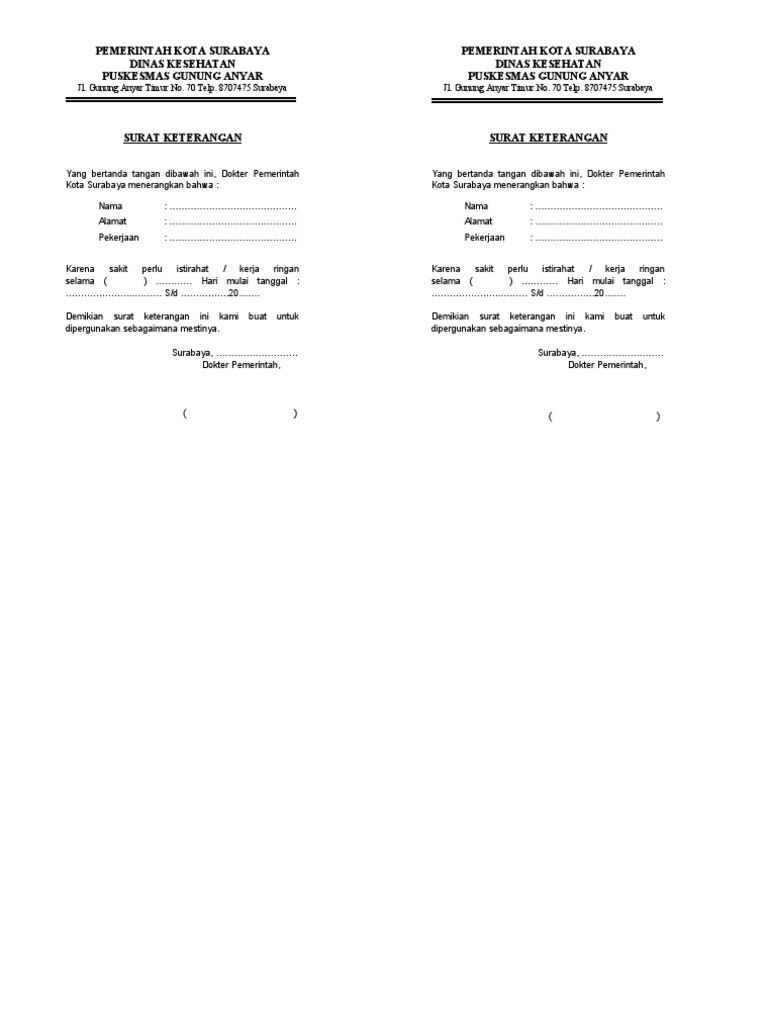 Pemerintah Kota Surabaya Surat Keterangan Sehat Dari Puskesmas Atau Rumah Sakit Pemerintah Pdf Document